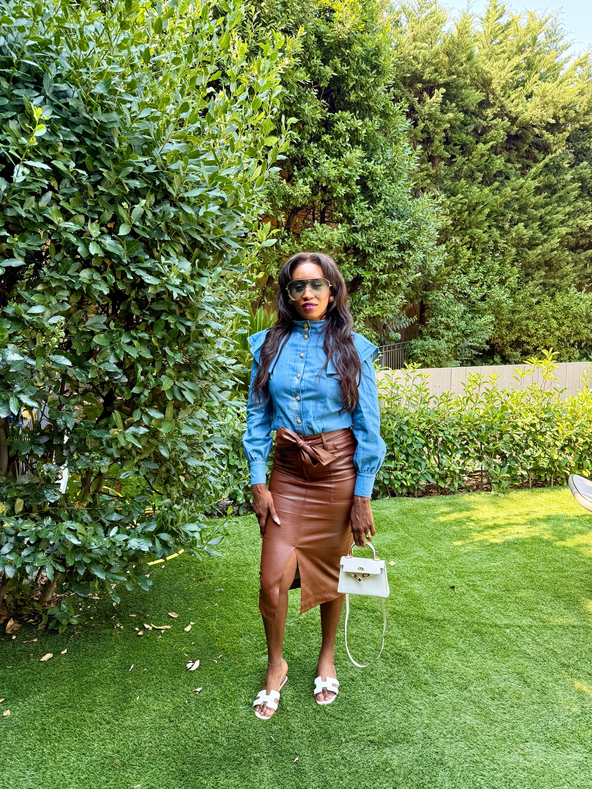 Jupe en similicuir avec noeux. En coloris camel.