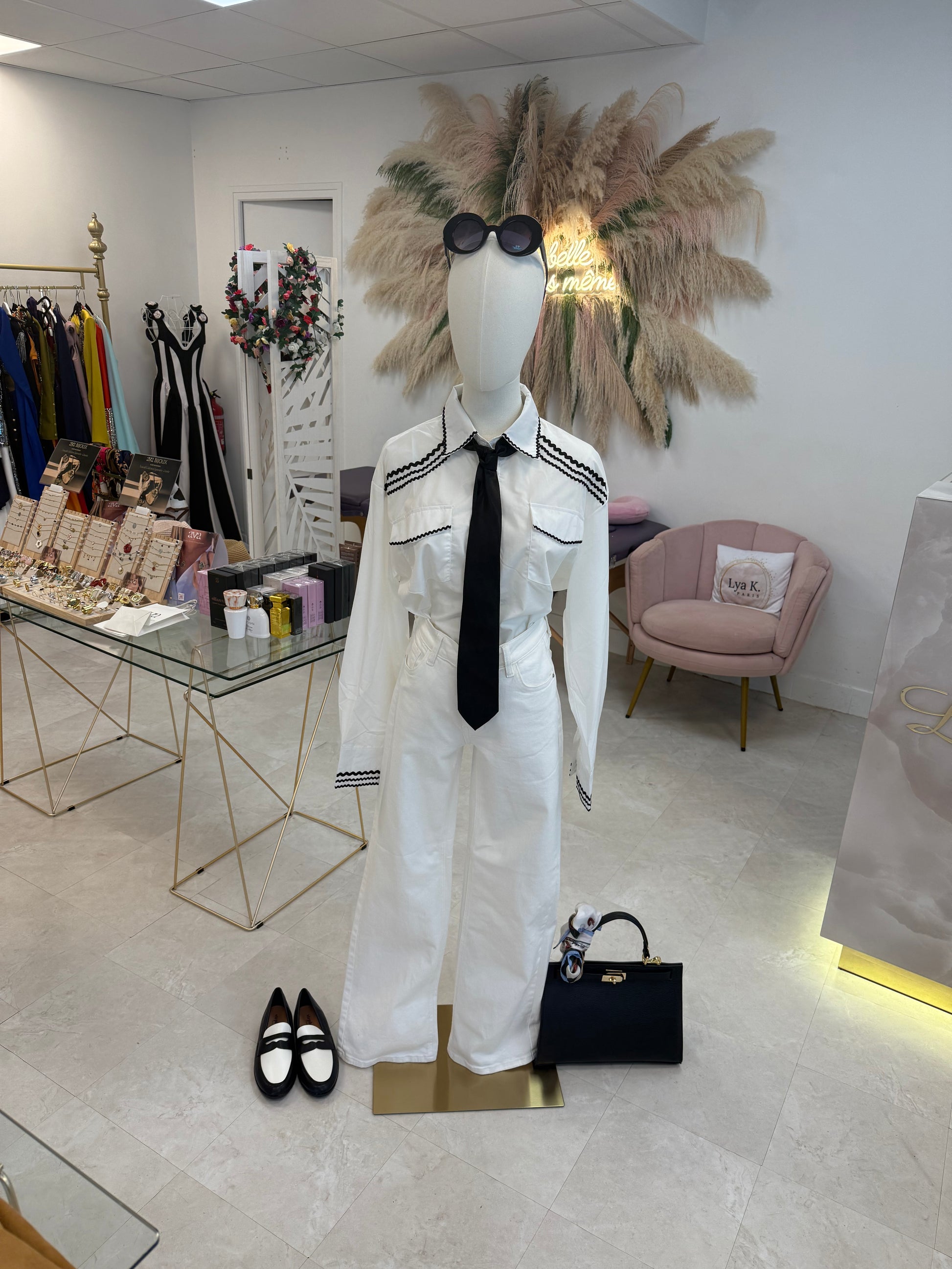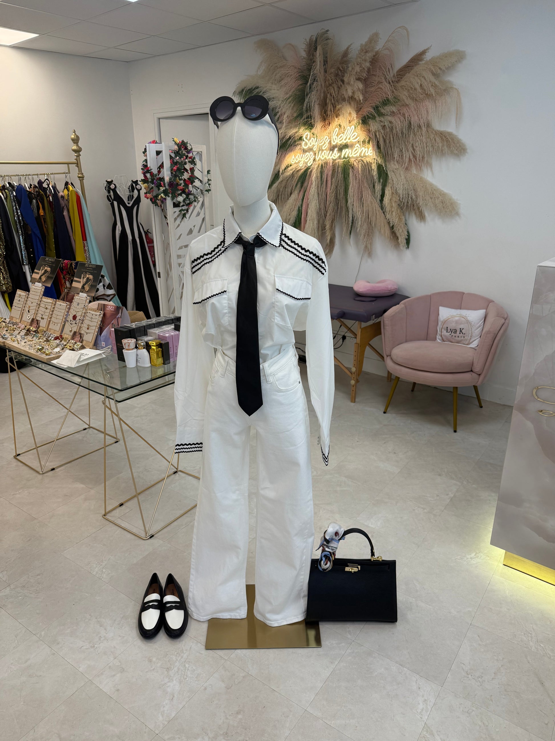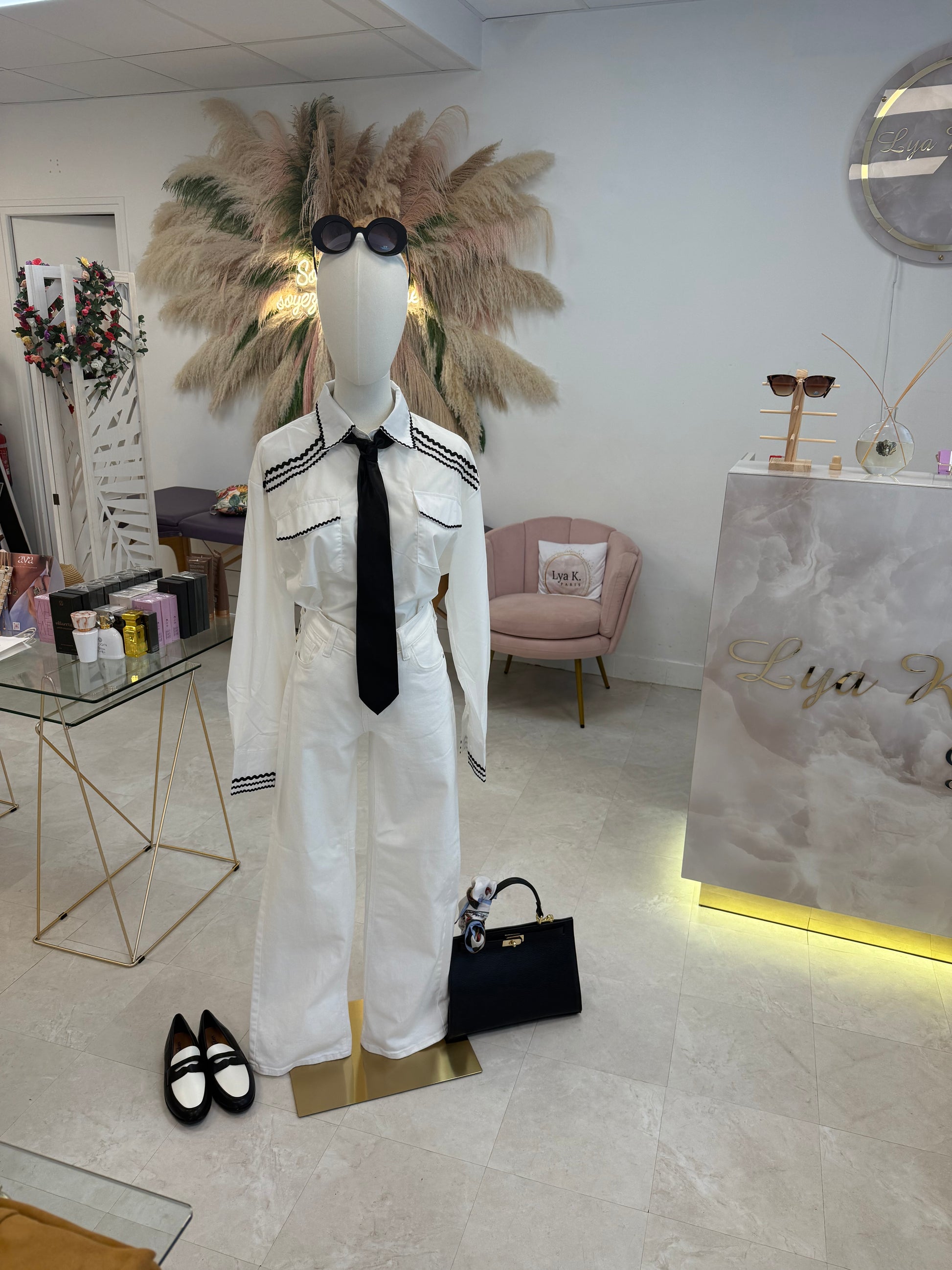 Jolie chemisier avec liseret noir. Très élégant ce chemisier vous garantie une élégance à tous les coups adapté pour une style classique Comme working Girl.